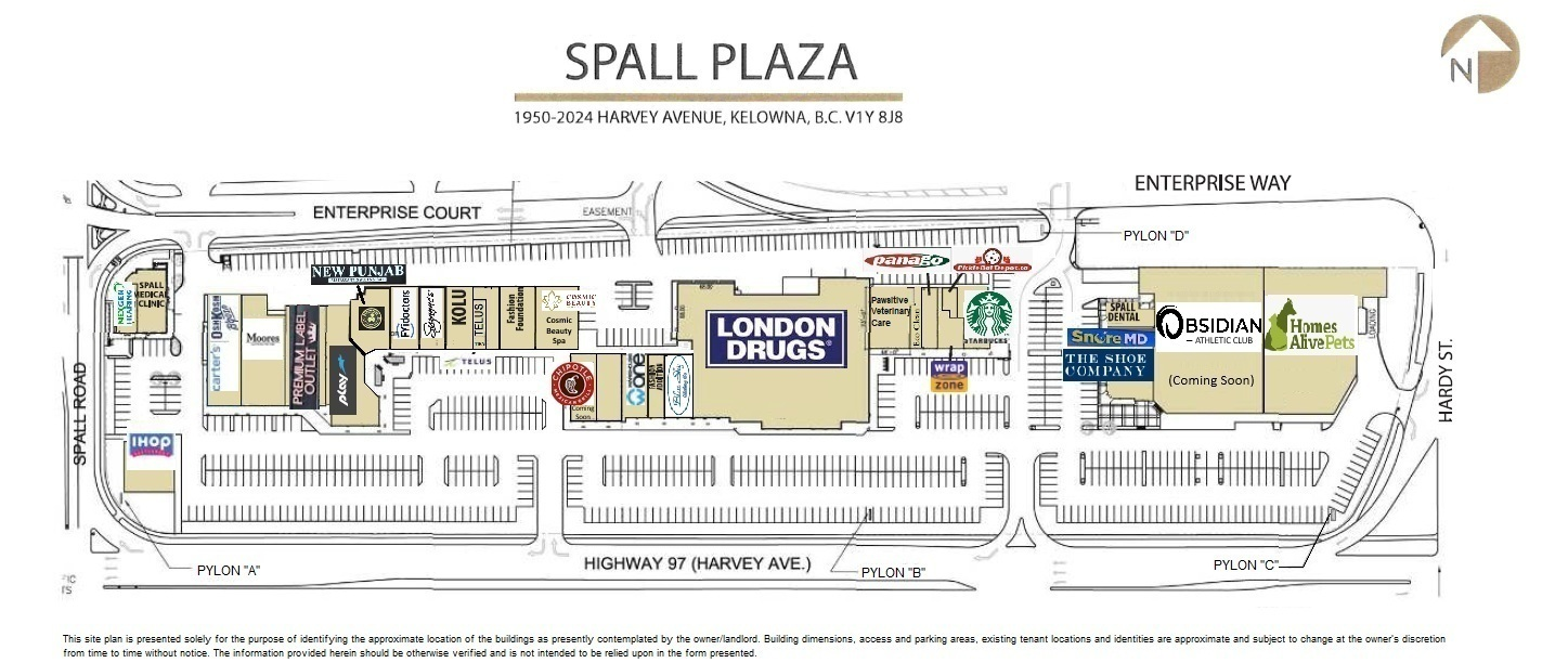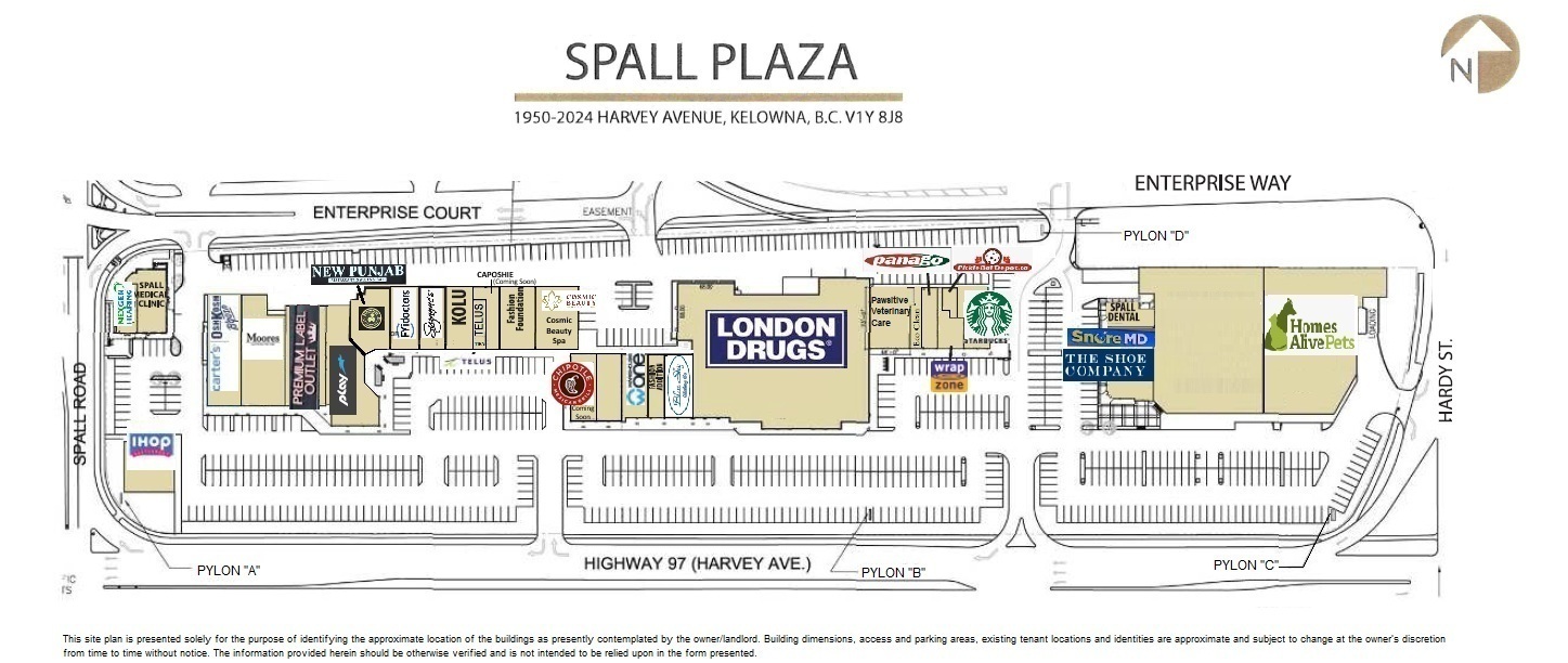 Located along Highway 97, the main commercial artery of the city, Spall Plaza is a major retail shopping center located in Kelowna, BC. Anchored by London Drugs and Homes Alive Pets, Spall Plaza offers over 155,000 square feet of retail stores and restaurants to serve the prime business, residential, and recreational districts in this largest community of the Regional District of Central Okanagan.