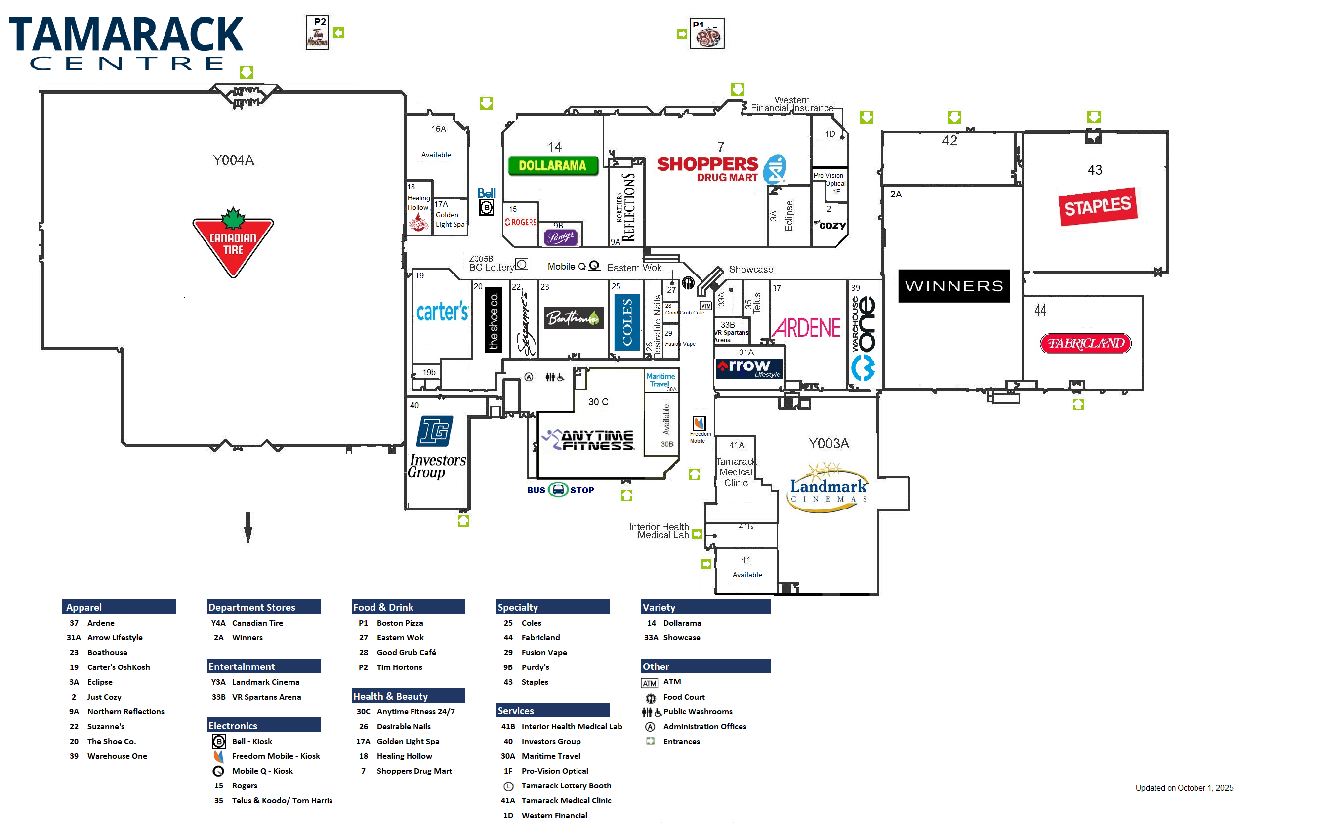 Tamarack Centre is located on Highway 3/95 in Cranbrook, BC, proudly serving the East Kootenays. As the predominant enclosed shopping center of the region, with a trade area of over 69,000 people, Tamarack Centre has been a focal point for the community for over four decades. From hosting fundraising events for community efforts to inviting Santa to hear all of the Kootenay Christmas wishes, Tamarack Centre is proud to support and be a part of the Kootenay community.